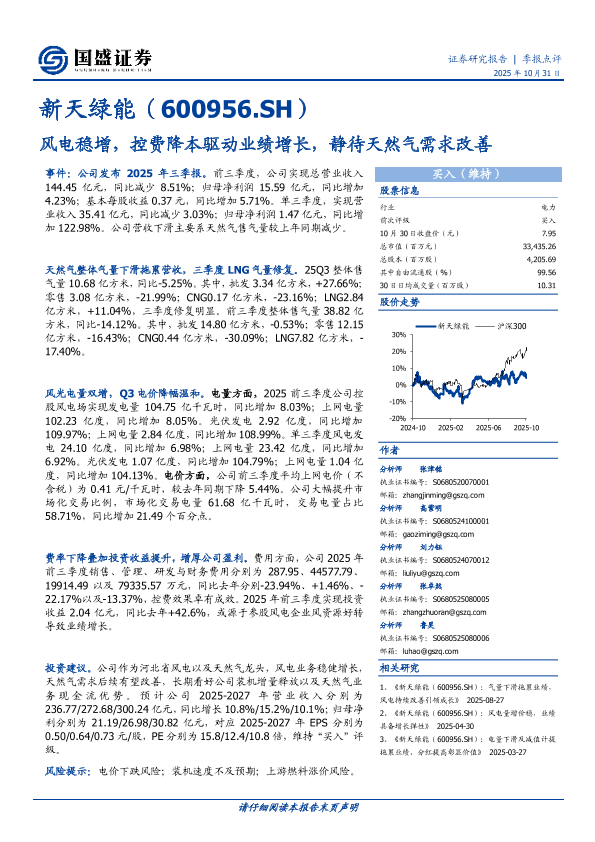 【国盛证券】【202510】风电稳增,控费降本驱动业绩增长,静待天然气需求改善-4页
