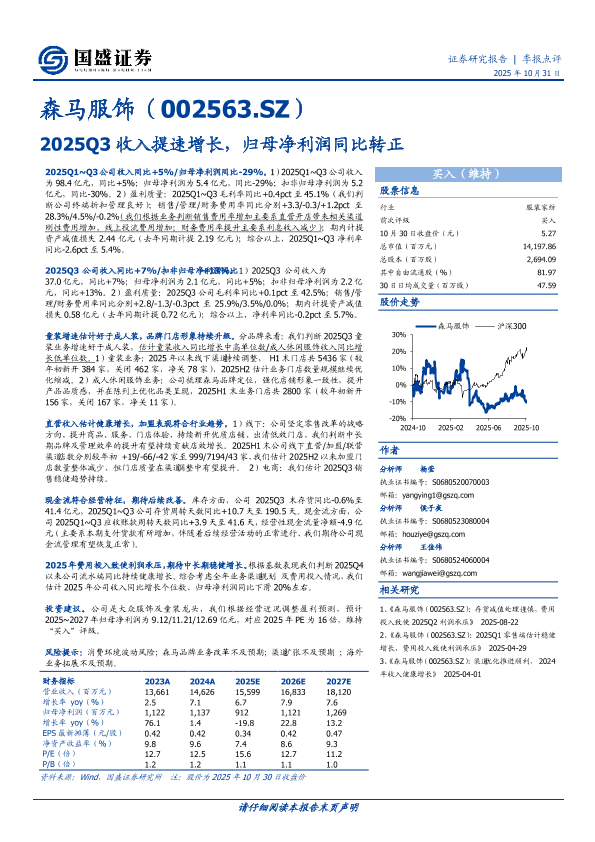 森马服饰 现金流分析 季报点评 盈利能力分析 童装业务