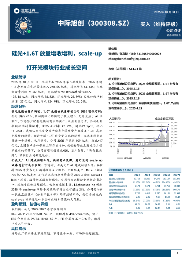 【国金证券】【202510】中际旭创-300308.SZ-硅光+1.6T放量增收增利_scale-up打开光模块行业成长空间-4页