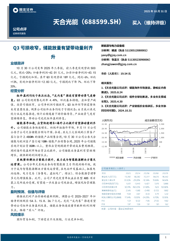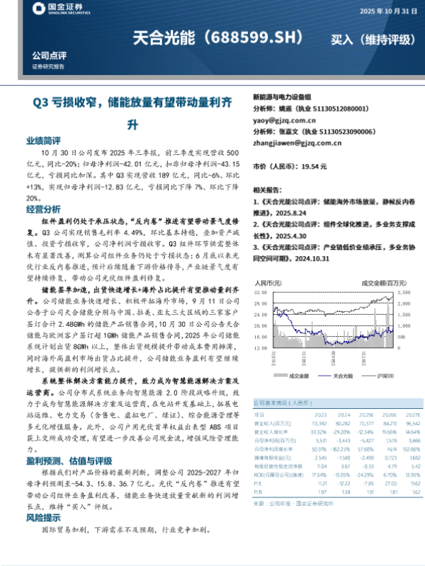【国金证券】【202510】天合光能-688599.SH-Q3亏损收窄_储能放量有望带动量利齐升-4页