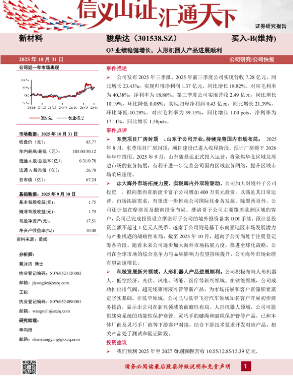 【山西证券】【202510】Q3业绩稳健增长,人形机器人产品进展顺利-5页