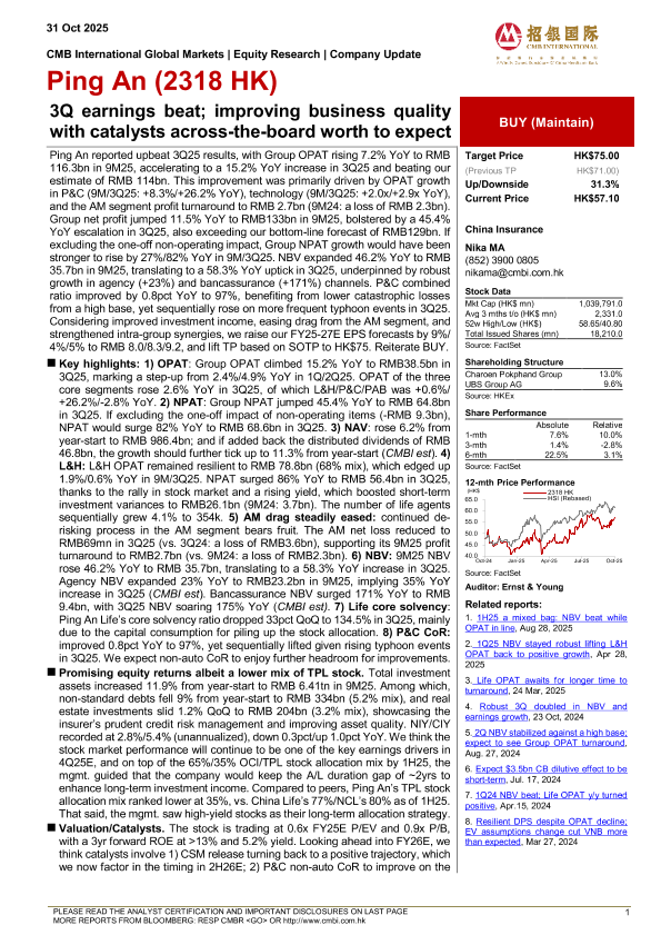 【CMB International Global Markets】【202510】Ping An(2318 HK)- 3Q earnings beat; improving business quality with catalysts across-the-board worth to expect-7页