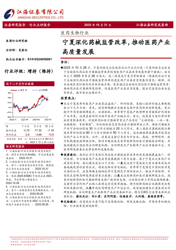 【江海证券】【202510】宁夏深化药械监管改革 推动医药产业高质量发展-3页