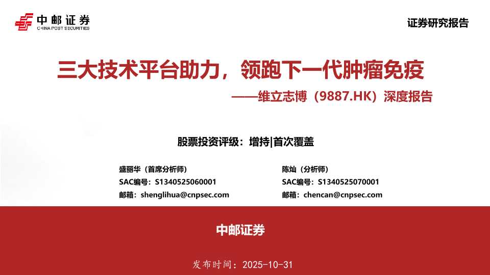 【中邮证券】【202510】三大技术平台助力,领跑下一代肿瘤免疫——维立志博(9887.HK)深度报告-47页