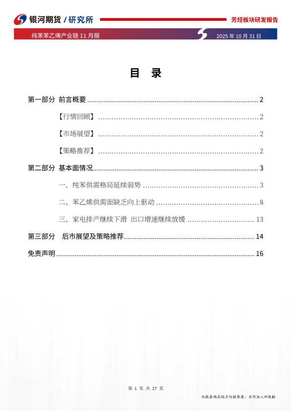 【银河期货】【202510】纯苯苯乙烯产业链 11月报-17页