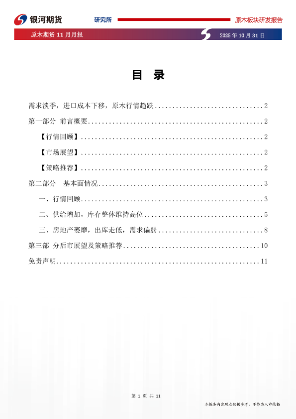 【银河期货】【202510】原木期货 11月月报-11页
