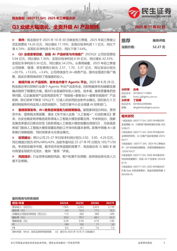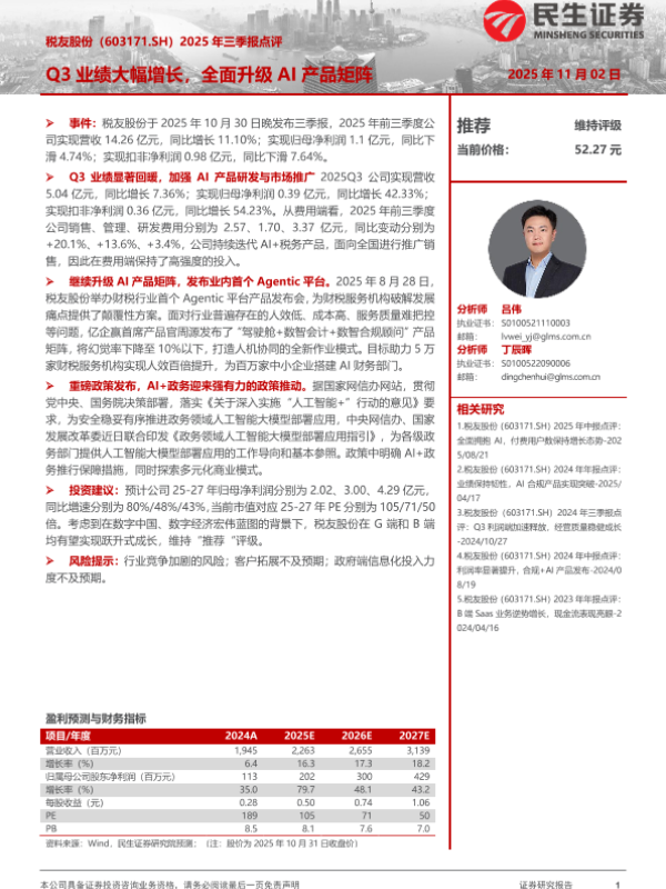 【民生证券】【202511】2025年三季报点评:Q3业绩大幅增长,全面升级AI产品矩阵-3页