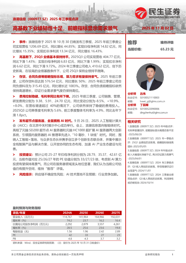 AI算力 服务器行业 三季报点评 投资建议 业绩分析