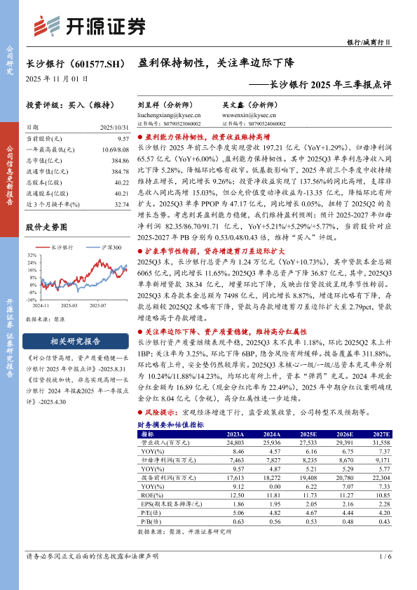 【开源证券】【202510】盈利保持韧性,关注率边际下降——长沙银行2025年三季报点评-6页