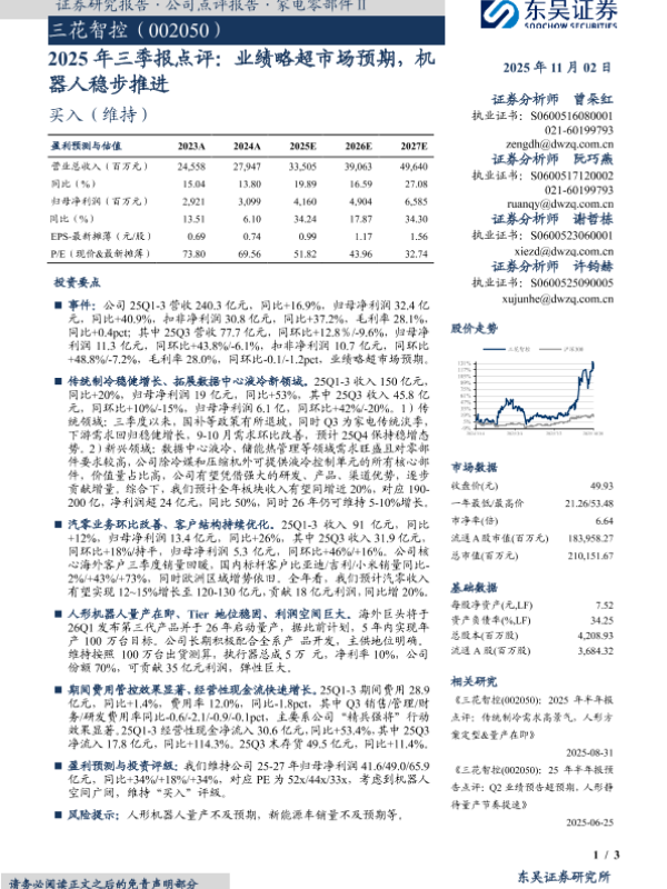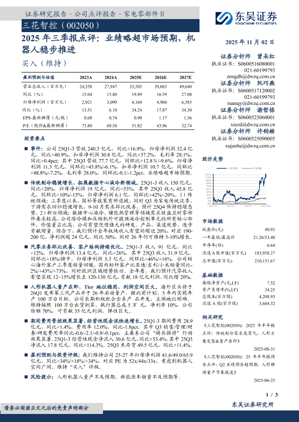 【东吴证券】【202511】2025年三季报点评:业绩略超市场预期,机器人稳步推进-3页