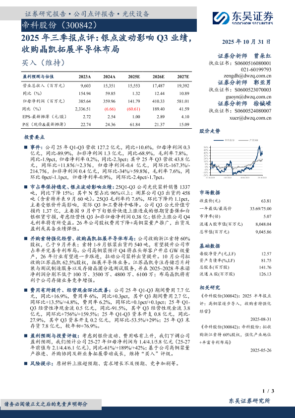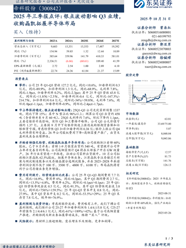 【东吴证券】【202510】2025年三季报点评:银点波动影响Q3业绩,收购晶凯拓展半导体布局-3页