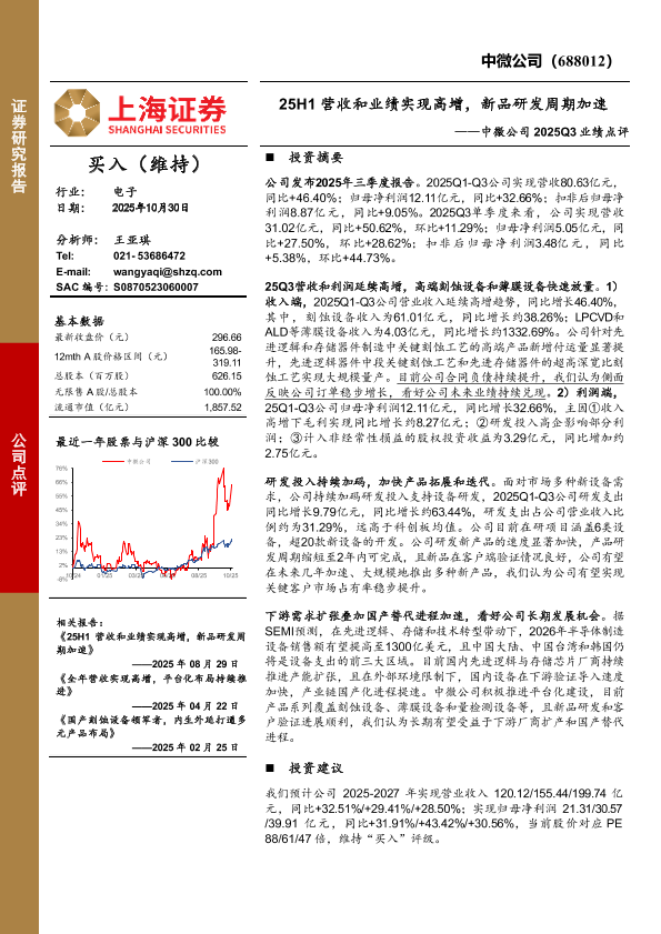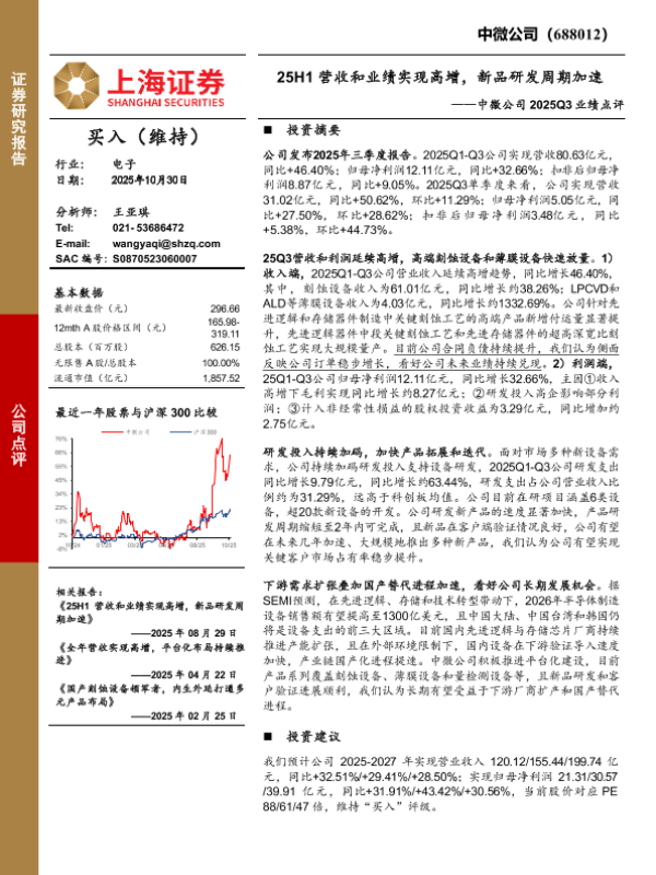 【上海证券】【202510】25H1营收和业绩实现高增,新品研发周期加速——中微公司 2025Q3业绩点评-4页