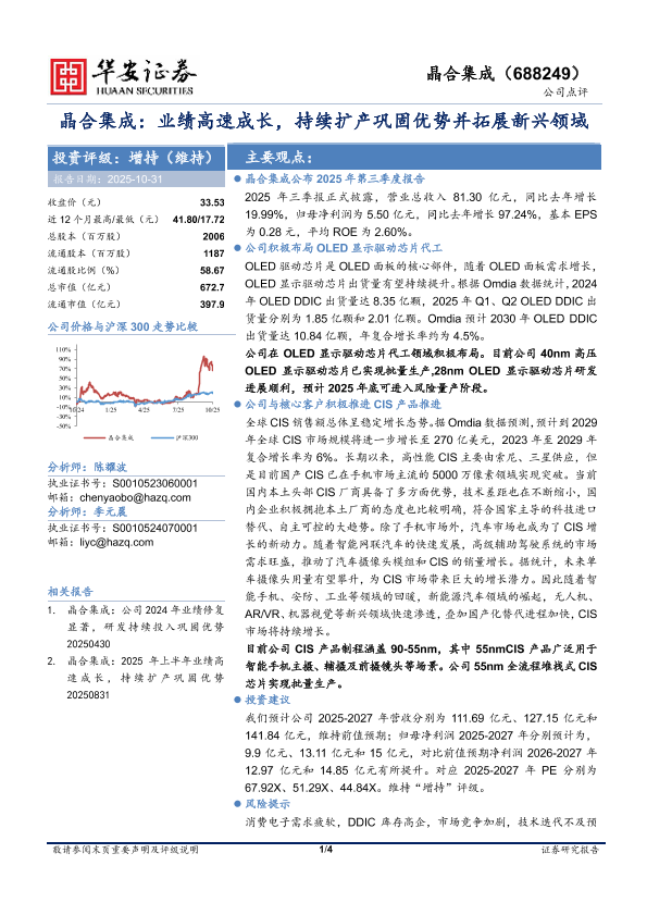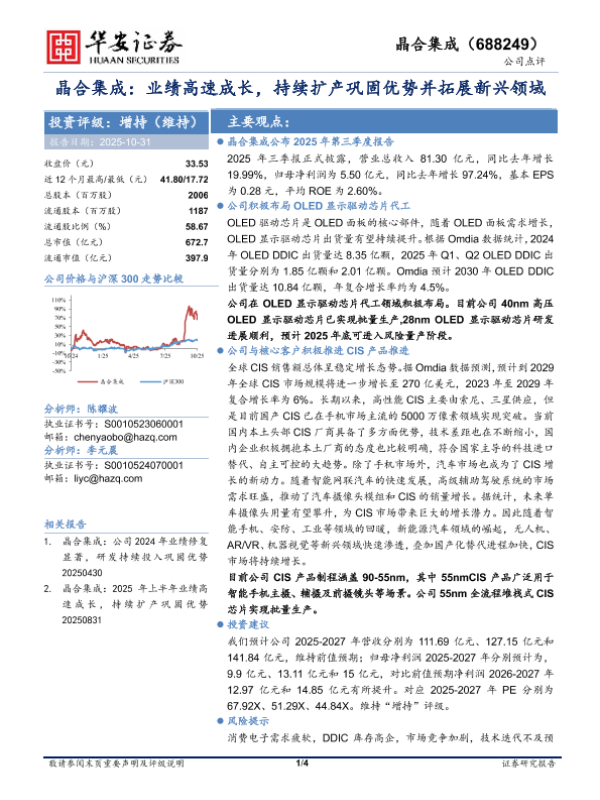 【华安证券】【202510】晶合集成:业绩高速成长,持续扩产巩固优势并拓展新兴领域-4页