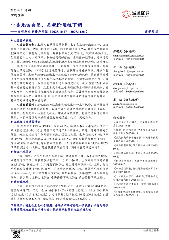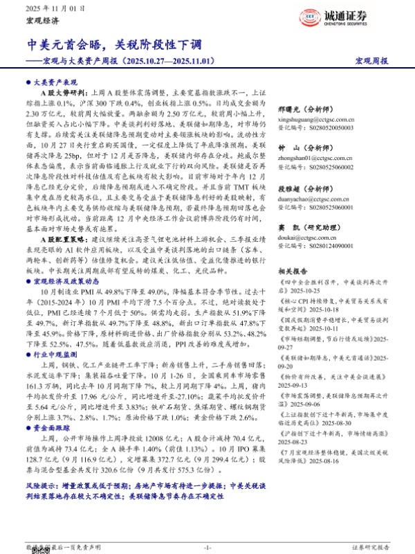 【诚通证券】【202511】中美元首会晤,关税阶段性下调——宏观与大类资产周报(2025.10.27—2025.11.01)-19页