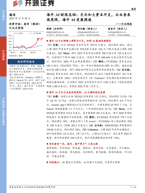 【开源证券】【202510】海外 AI财报总结:巨头加大资本开支,云业务表现亮眼,海外 AI发展提速-14页