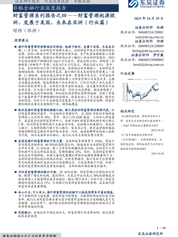 【东吴证券】【202510】财富管理系列报告之四——财富管理起源欧洲、发展于美国,未来在亚洲(行业篇)-14页