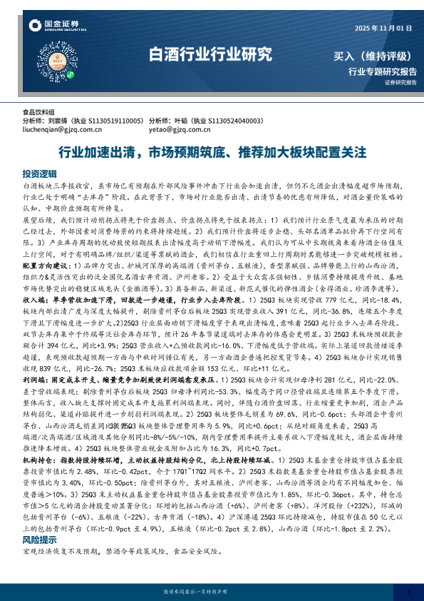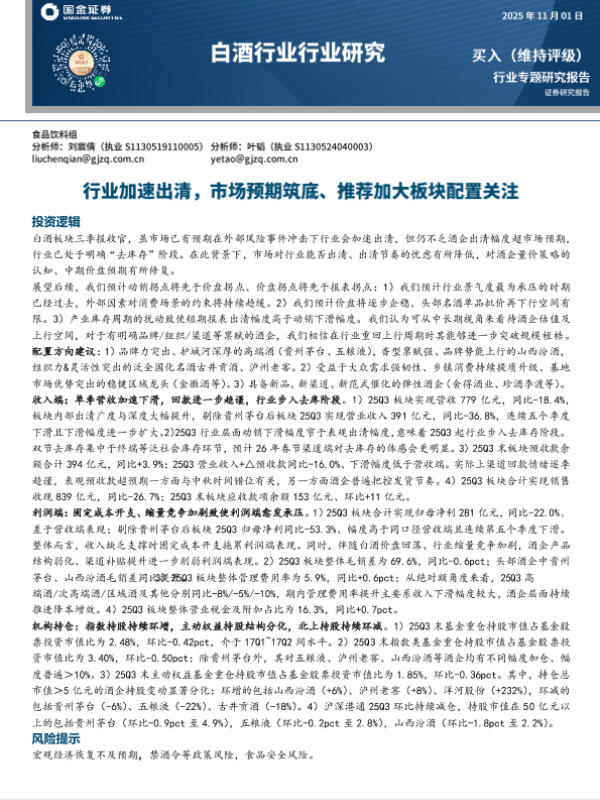 【国金证券】【2025】白酒行业行业研究:行业加速出清,市场预期筑底、推荐加大板块配置关注-21页