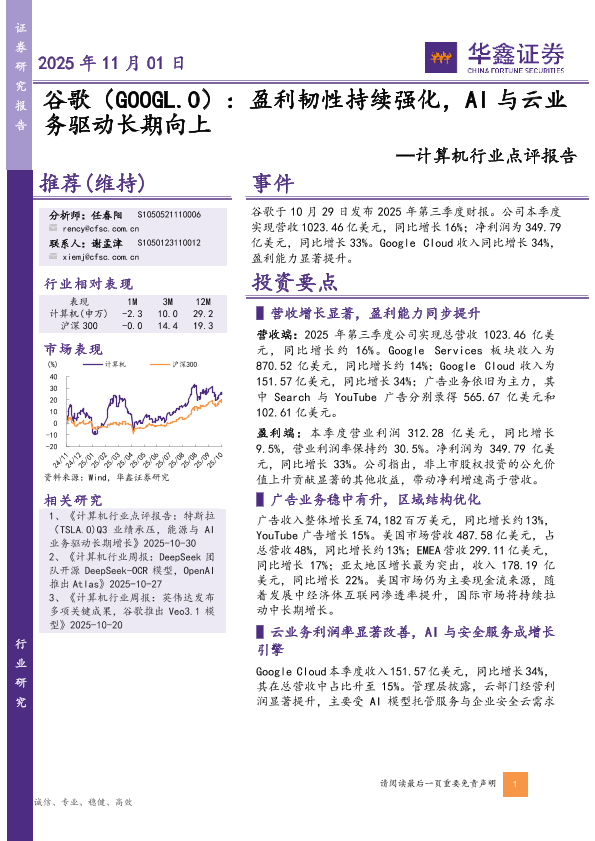 【华鑫证券】【202511】谷歌:盈利韧性持续强化,AI与云业务驱动长期向上-5页