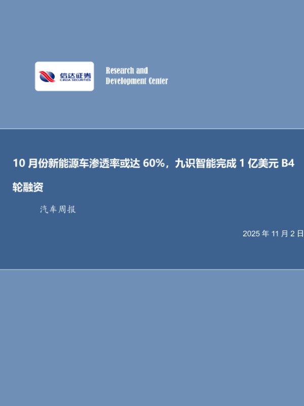 【信达证券】【202511】10月份新能源车渗透率或达 60%,九识智能完成 1亿美元 B4轮融资-11页