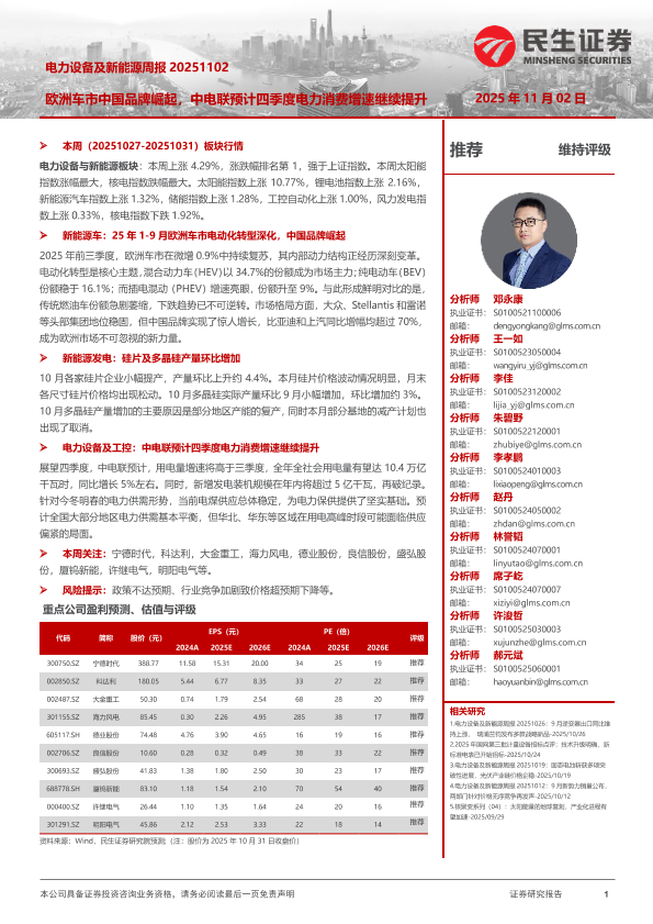 【民生证券】【202511】电力设备及新能源周报 20251102-19页