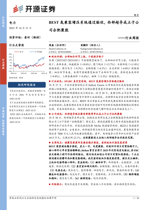 【开源证券】【202510】电力行业周报:BEST氚兼容增压系统通过验收,西部超导成立子公司合肥聚能-10页
