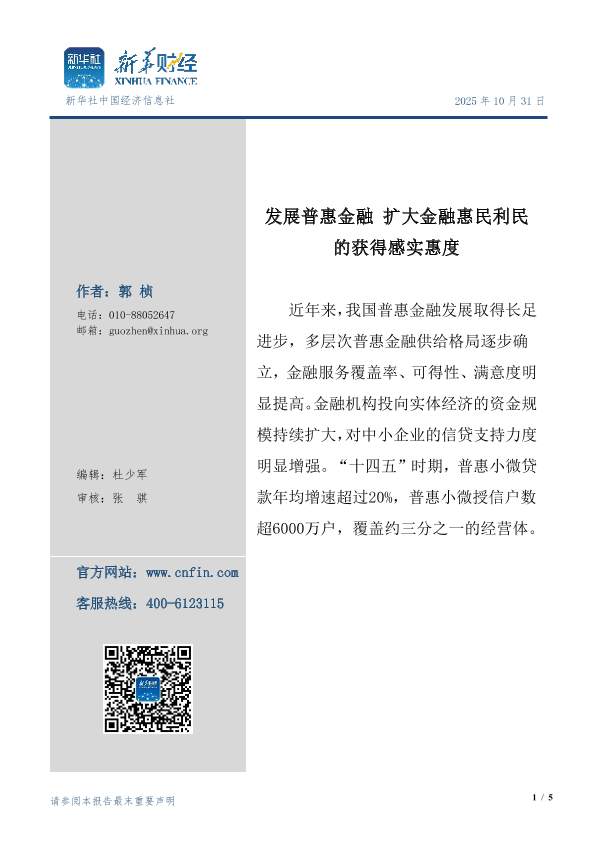 【新华社中国经济信息社】【202510】发展普惠金融扩大金融惠民利民的获得感实惠度-5页