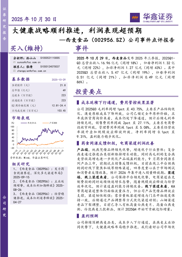 【华鑫证券】【202510】大健康战略顺利推进,利润表现超预期-5页