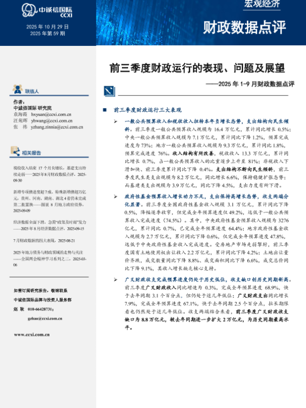 【中诚信国际】【202509】2025年1-9月财政数据点评:前三季度财政运行的表现、问题及展望-12页