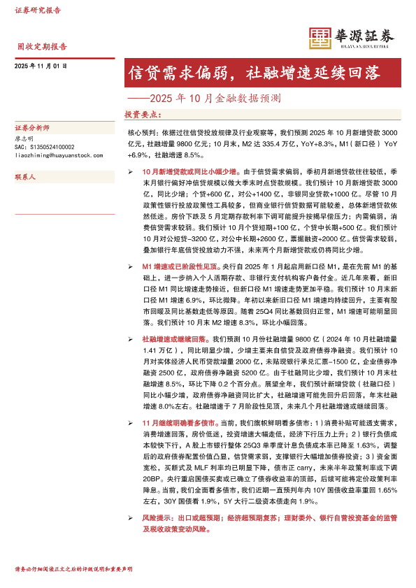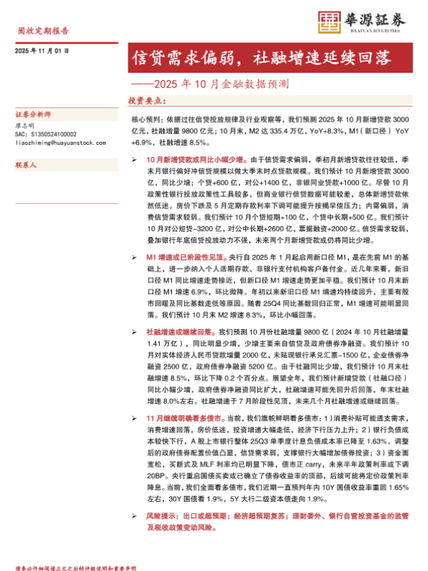 【华源证券】【202511】信贷需求偏弱,社融增速延续回落——2025年10月金融数据预测-4页