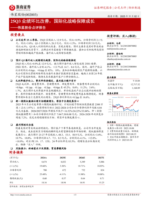 【浙商证券】【202511】25Q3业绩环比改善,国际化战略保障成长——伟星股份点评报告-3页