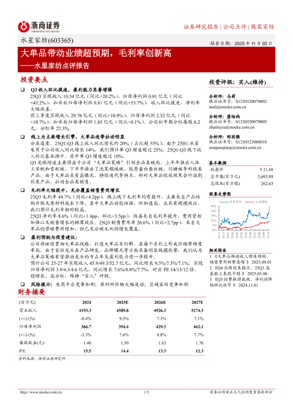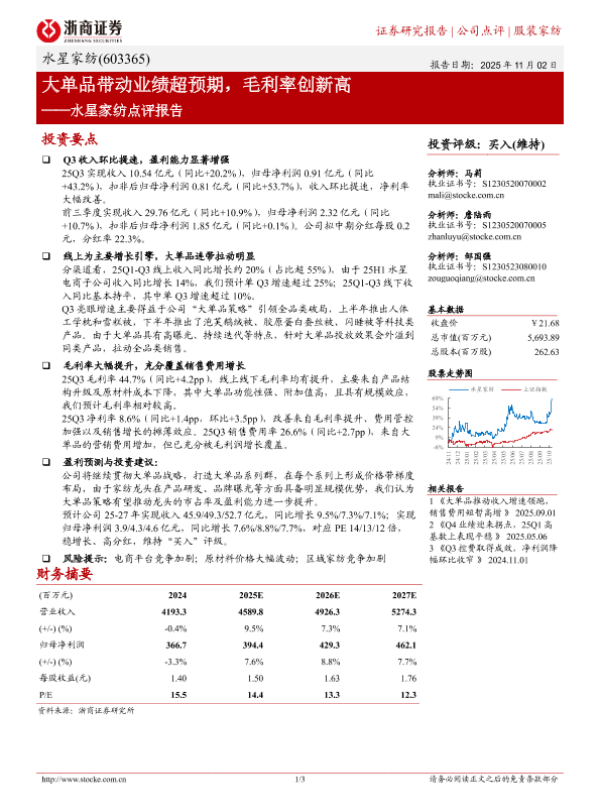 【浙商证券】【2025】大单品带动业绩超预期,毛利率创新高——水星家纺点评报告-3页