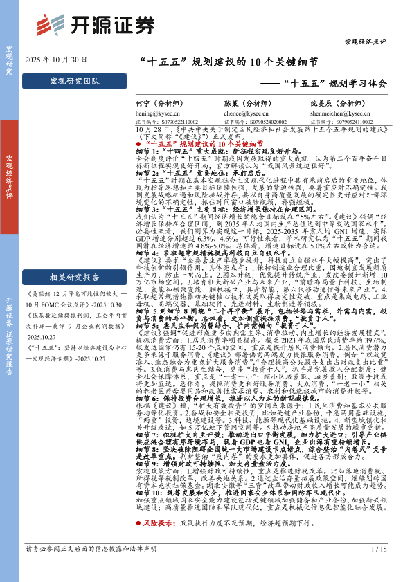 【开源证券】【202510】“十五五”规划学习体会:‘十五五’规划建议的10个关键细节-18页