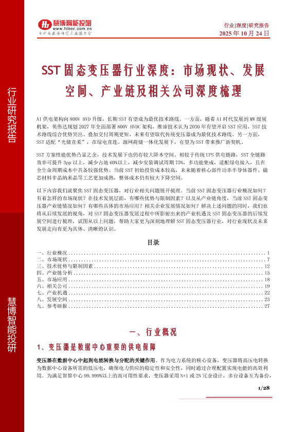 【慧博智能投研】【202510】SST固态变压器行业深度:市场现状、发展空间、产业链及相关公司深度梳理-28页