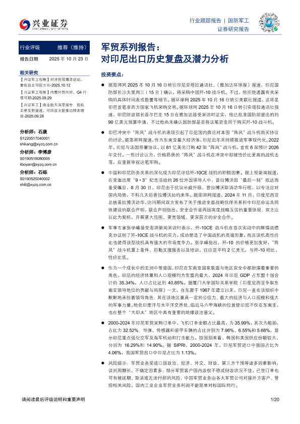 【兴业证券】【202510】军贸系列报告:对印尼出口历史复盘及潜力分析-20页