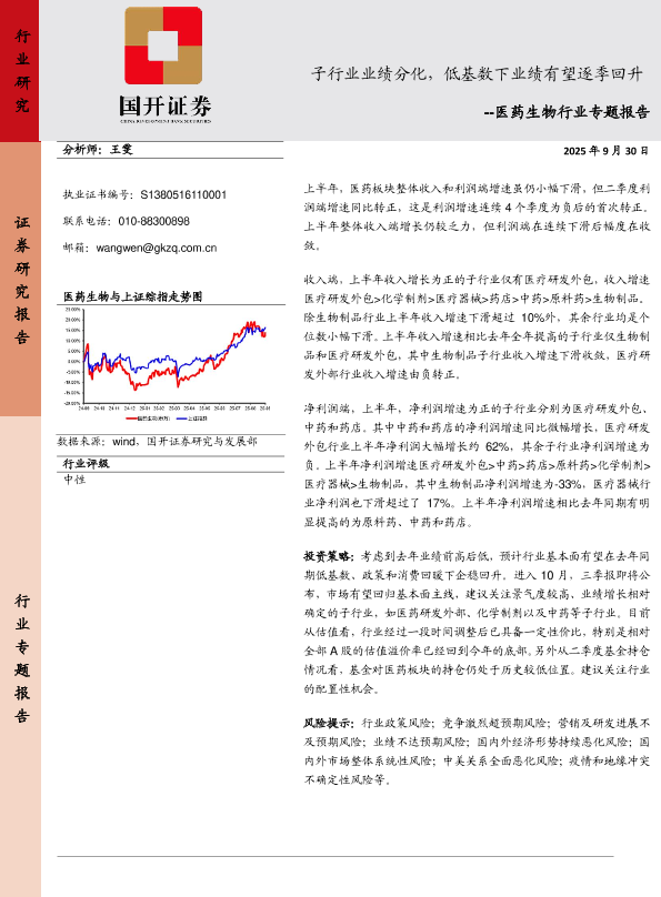 低基数 业绩回升 子行业业绩 投资策略 医药生物
