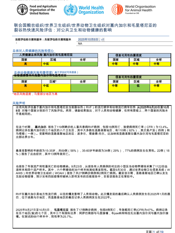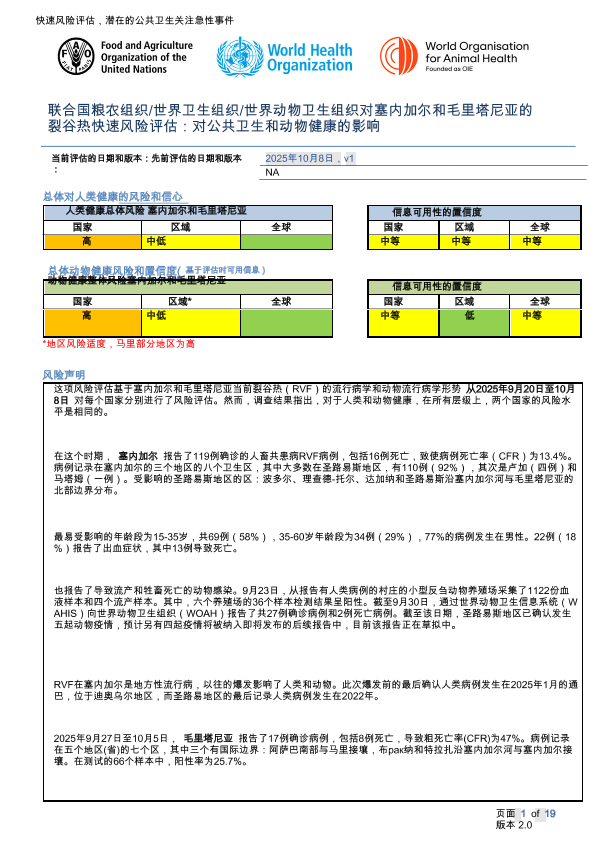 【联合国粮农组织/世界卫生组织/世界动物卫生组织】【202510】塞内加尔和毛里塔尼亚裂谷热(RVF)的快速风险评估:对公共卫生和动物健康的影响-19页