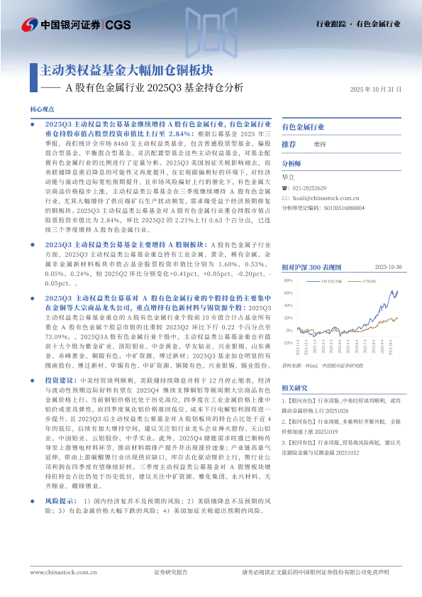 【银河证券】【202510】A股有色金属行业 2025Q3基金持仓分析-7页