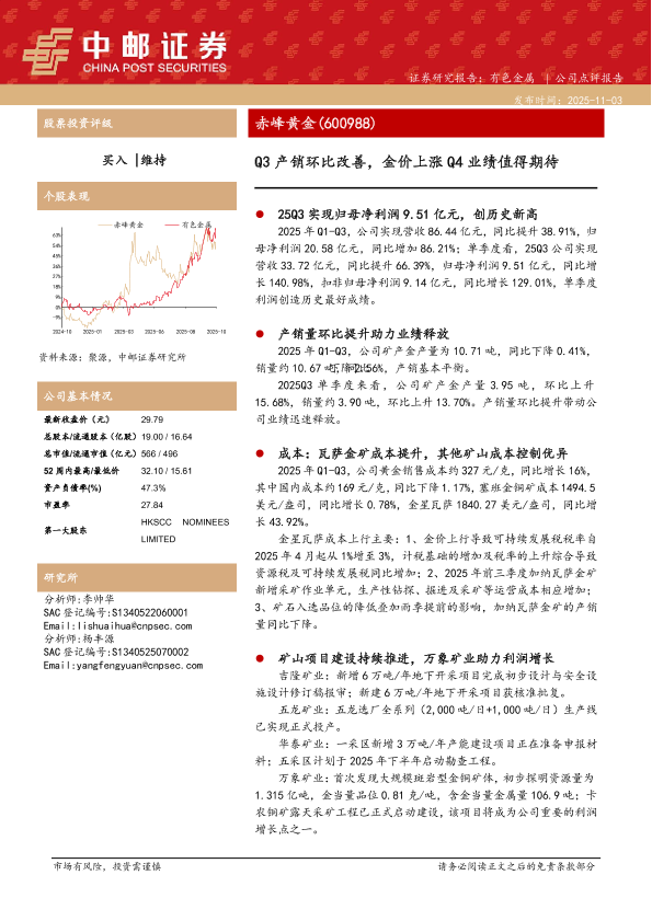 【中邮证券】【2025】Q3产销环比改善,金价上涨 Q4业绩值得期待-5页
