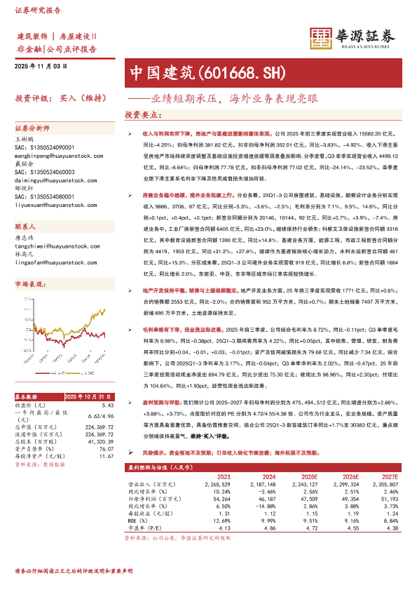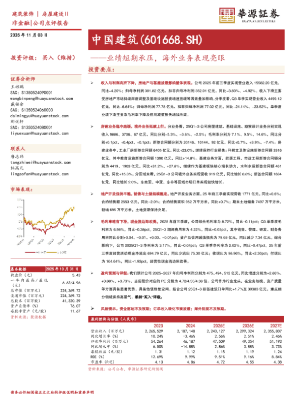 【华源证券】【202511】中国建筑(601668.SH)——业绩短期承压,海外业务表现亮眼-3页