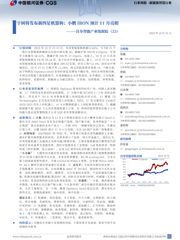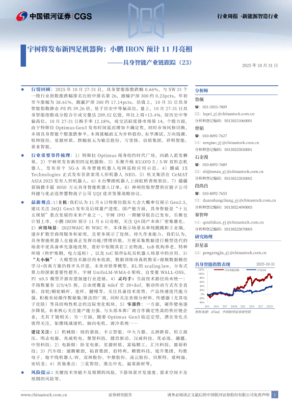 【银河证券】【202510】具身智能产业链跟踪(23):宇树将发布新四足机器狗;小鹏IRON预计11月亮相-11页