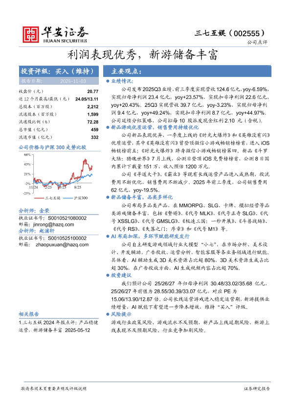 【华安证券】【2025】利润表现优秀,新游储备丰富-4页