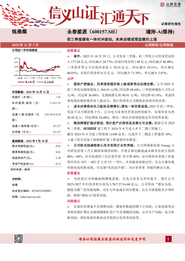 【山西证券】【202511】炼焦煤 永泰能源(600157.SH) 增持-A(维持)-5页