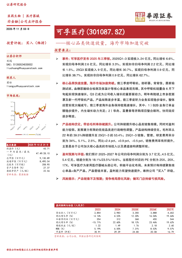 【华源证券】【202511】可孚医疗——核心品类快速放量,海外市场加速突破-3页