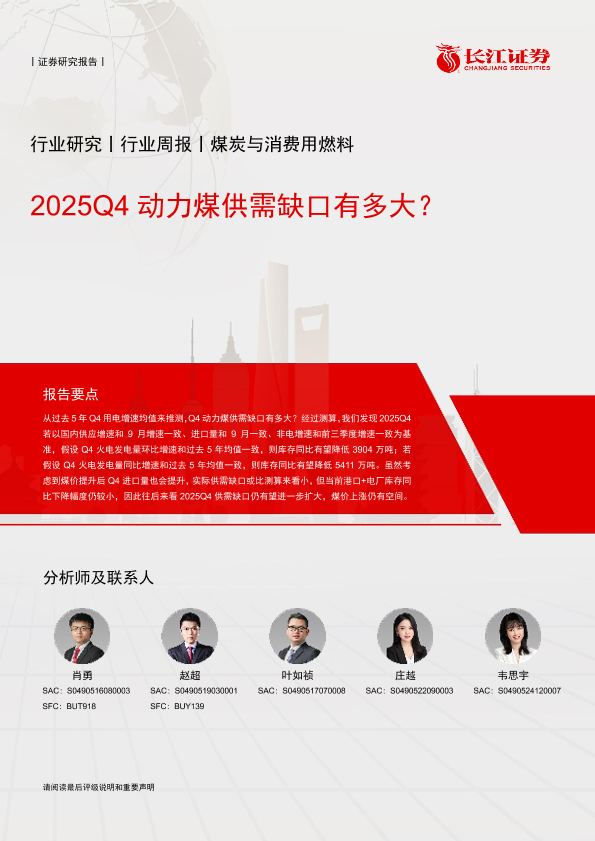 【长江证券】【202510】煤炭与消费用燃料行业周报:2025Q4动力煤供需缺口有多大?-15页