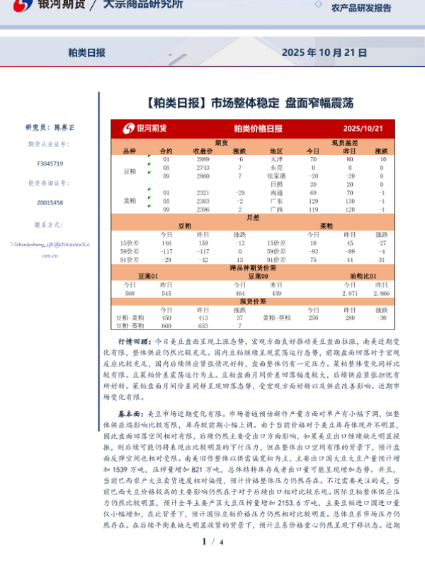 【银河期货】【202510】粕类日报 2025年 10月 21日-4页