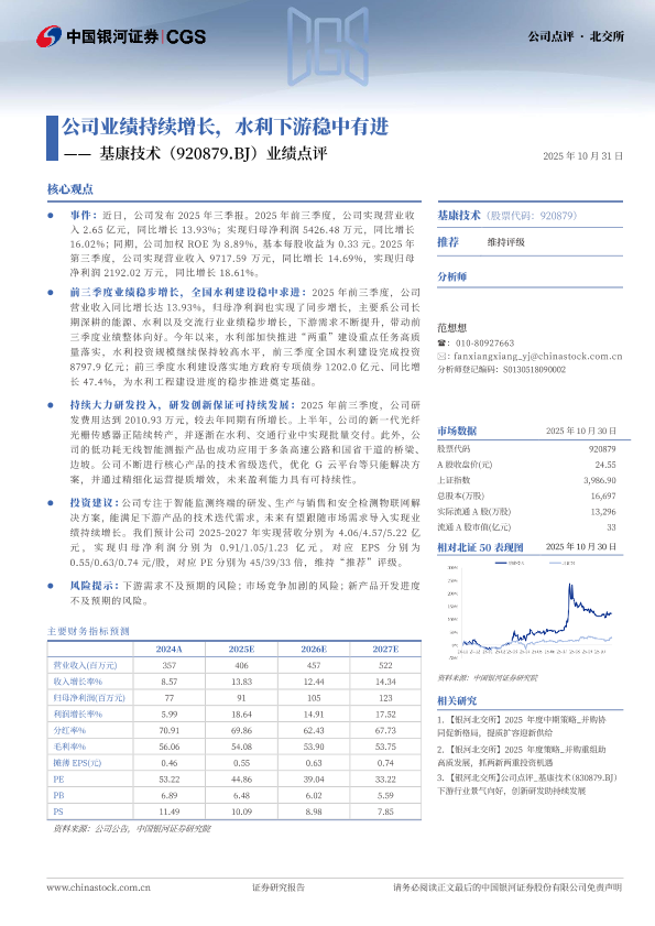 【银河证券】【202510】公司业绩持续增长,水利下游稳中有进——基康技术(920879.BJ)业绩点评-3页