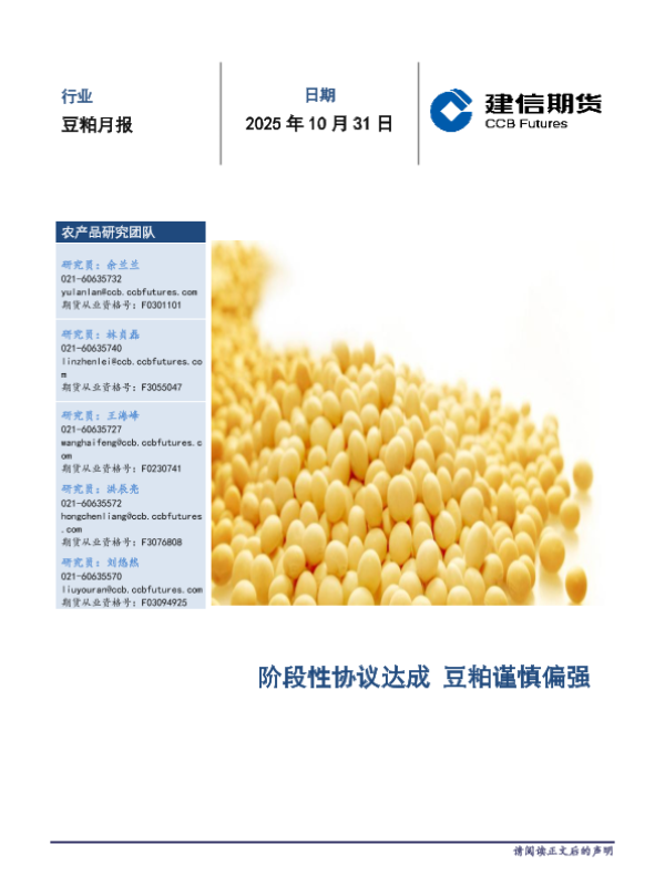 【建信期货研投中心】【202510】豆粕月报-升水修复,重新起航-阶段性协议达成豆粕谨慎偏强-14页