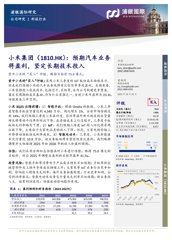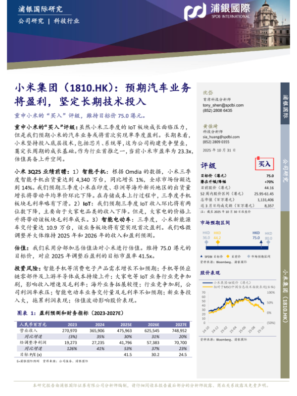 【浦银国际】【202510】小米集团(1810.HK):预期汽车业务 将盈利,坚定长期技术投入-7页