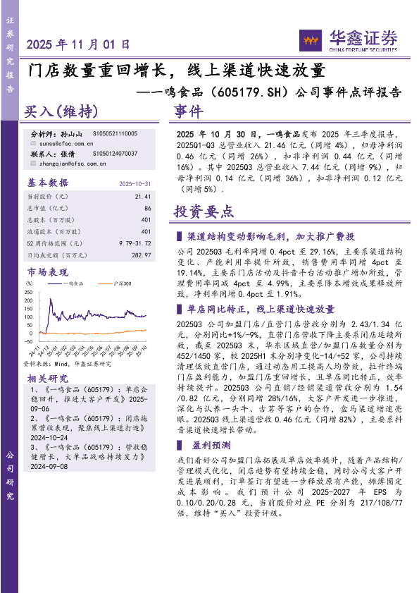 净利润 加盟门店 毛利率 一鸣食品 线上渠道
