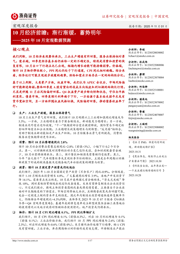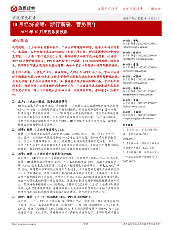 【浙商证券】【202511】10月经济前瞻:渐行渐缓,蓄势明年——2025年 10月宏观数据预测-17页